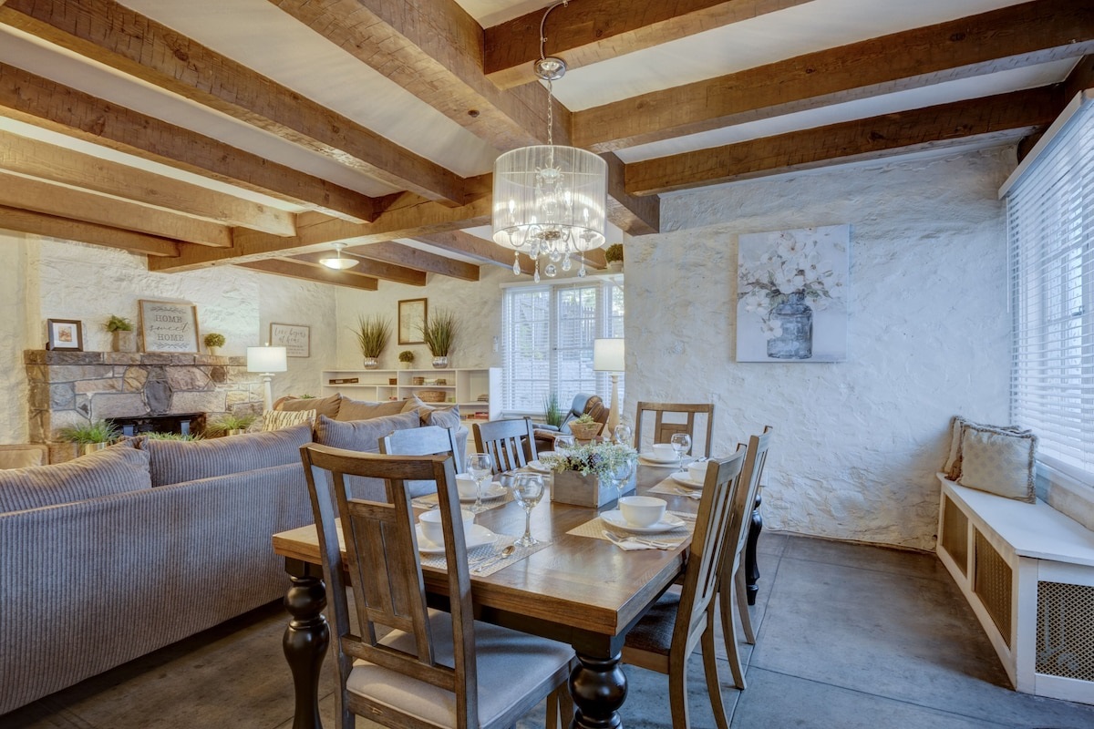 With five bedrooms and two baths, this newly remodeled house offers more than enough room to spread out and relax. Inviting touches can be found throughout the entire home, but are especially prevalent in the open and inviting living room. You'll love spending time in this charming room, which features a beautiful stone fireplace, tasteful decor, comfortable furniture, and original exposed beams. These beams were extracted from the Virginia City silver mines and are a true piece of American history built right into the home.